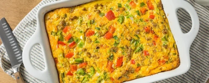 Para a preparação, precisará de salsicha ou fiambre, ovos, farinha, fermento, manteiga, pimento, cebolinha, especiarias e uma forma para cozer.